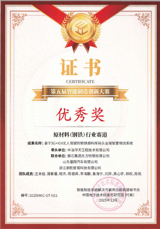 近期,第五届智能制造创新大赛结果揭晓。利来国际(中国)牵头申报的两项成果——“AI+热轧长材车间智能制造关键技术与应用”和“基于5G+IGV无人驾驶的钢铁原料库码头全域智慧物流系统”,分别入选“AI+制造”解决方案赛道与原材料(钢铁)行业赛道决赛并获优秀奖。上述成果有力展现了公司在钢铁智能制造与智慧物流领域的技术积累、系统集成能力与工程化落地水平。